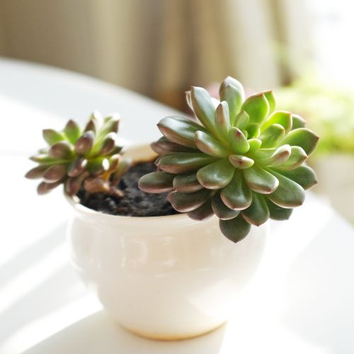 Outra vantagem é que suculentas precisam de pouca água e costumam se adaptar bem a ambientes internos bem iluminados.